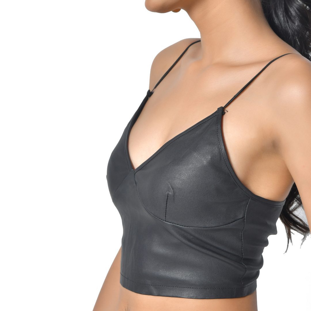 LADIES STRETCH LEATHER HALTER TOP
