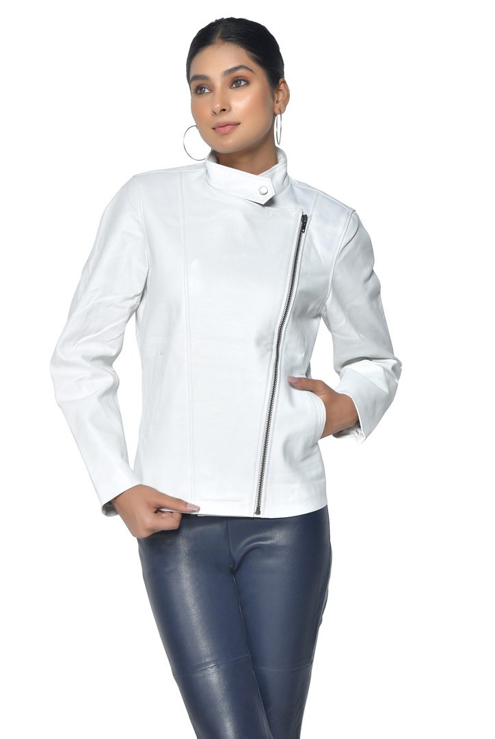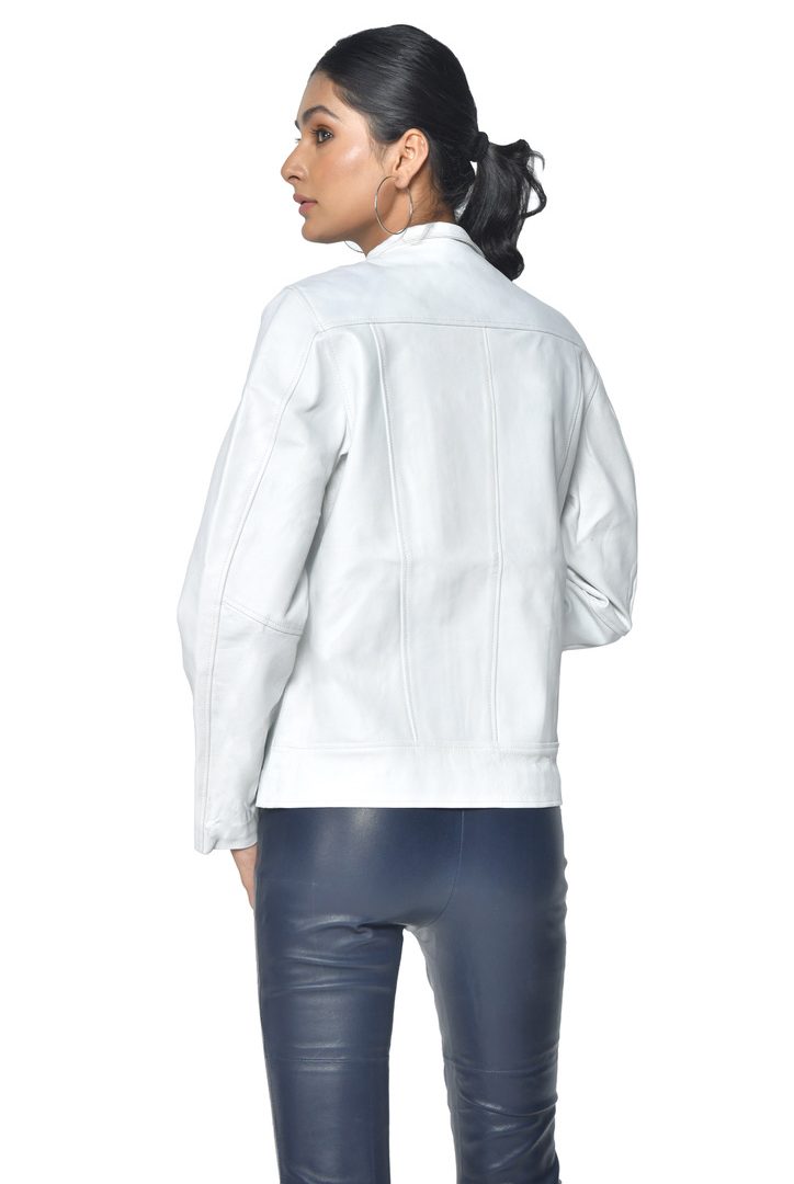 LADIES CROSS STITCH LEATHER JACKET