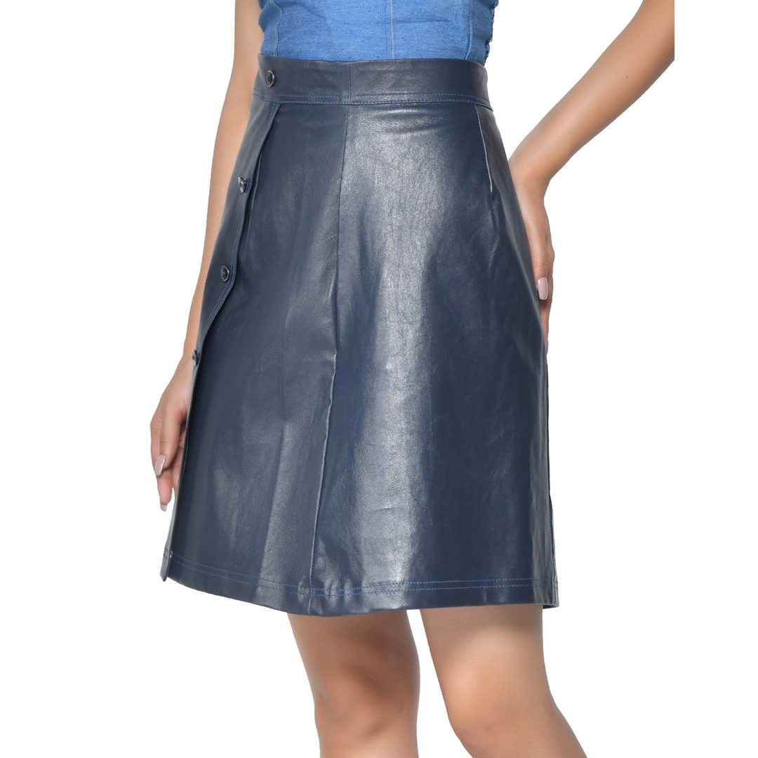 LADIES STRETCH LEATHER SKIRT BUTTON DOWN